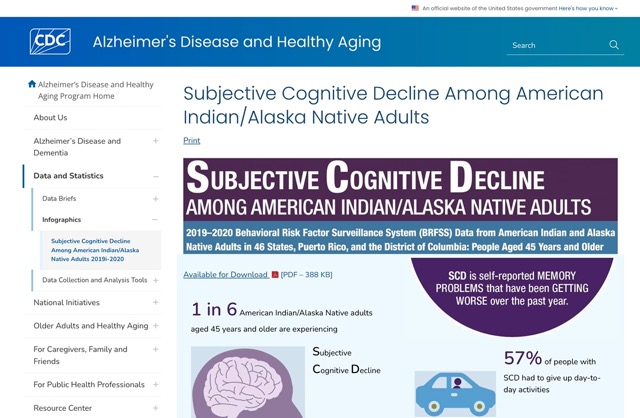 1 de cada 6 adultos indígenas americanos o nativos de Alaska experimenta deterioro cognitivo subjetivo. Consulte los recursos personalizados de salud cerebral y cuidado a continuación para obtener más información: